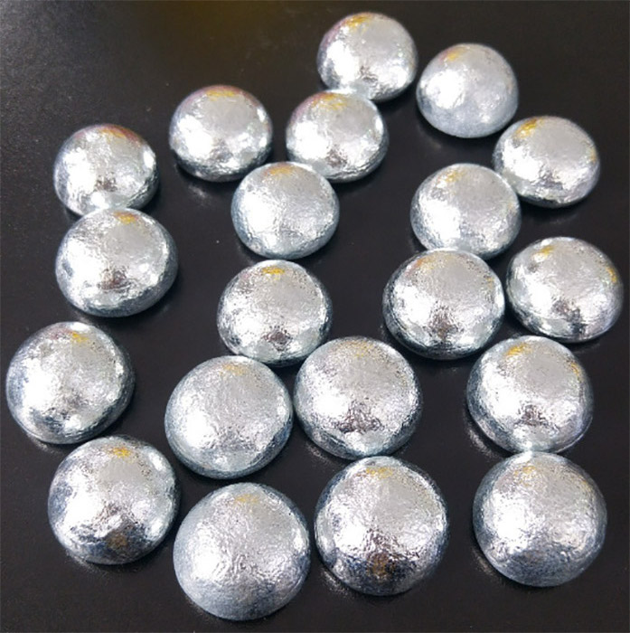 gli ANODI DI ZINCO SHG 99.995% sono fornibili, su richiesta, anche in pezzature/formati più piccoli: Pellet, Berlingot, Semisfere etc.